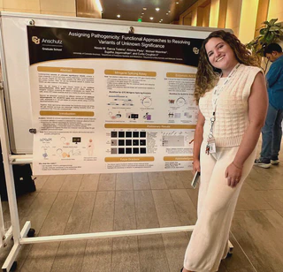 Nicole presented her early work focused on interpreting variants of unknown significance for two inborn errors of metabolism: pyridoxine-dependent epilepsy (PDE) and ornithine transcarbamylase (OTC) deficiency. This work focused on both measuring enzyme activity using an e.coli-based expression vector and RNA studies using an OTC minigene.